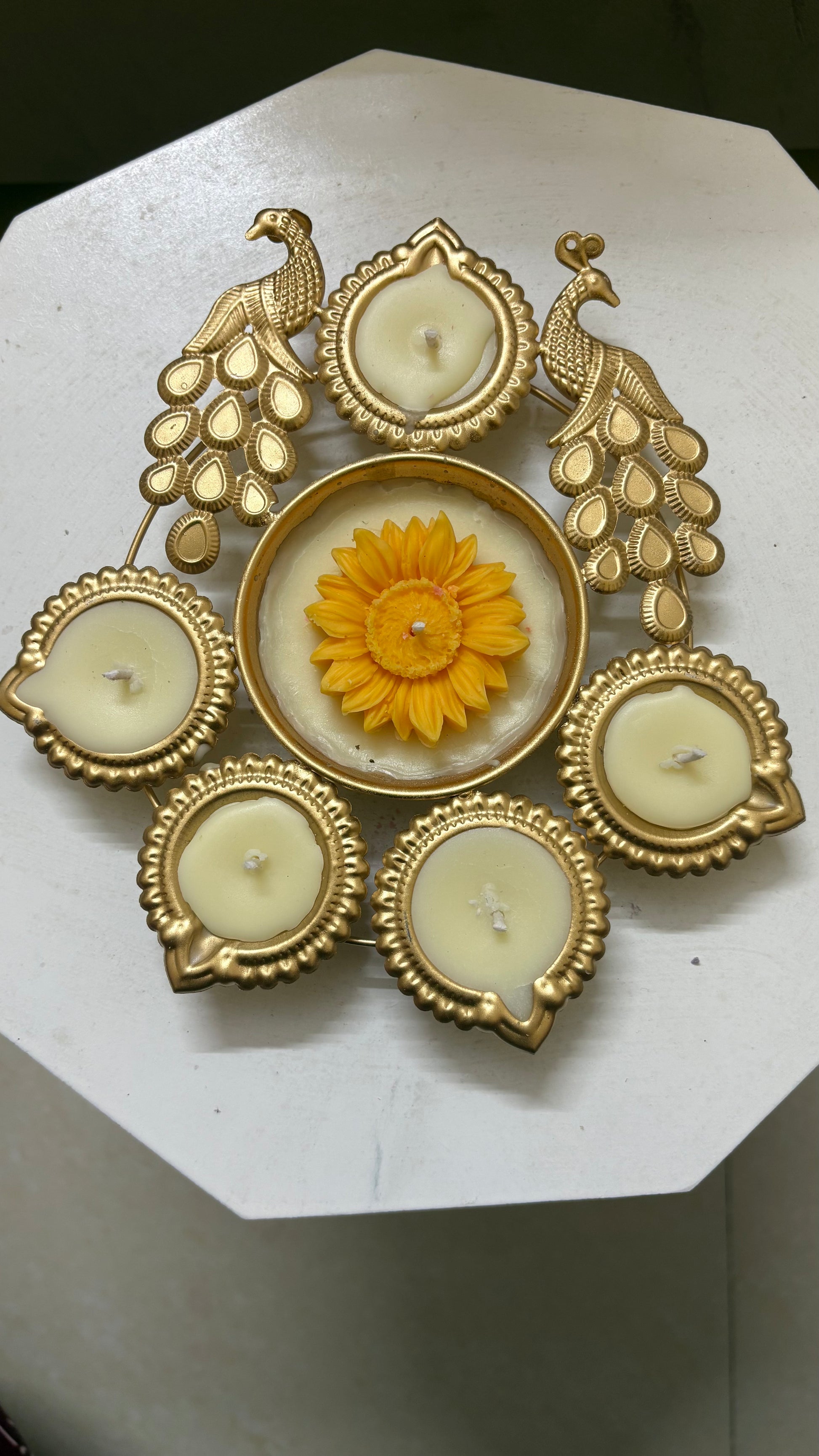 Celebrate timeless craftsmanship with the Golden Peacock Urli Candle – where luxury and tradition come together in a golden glow.